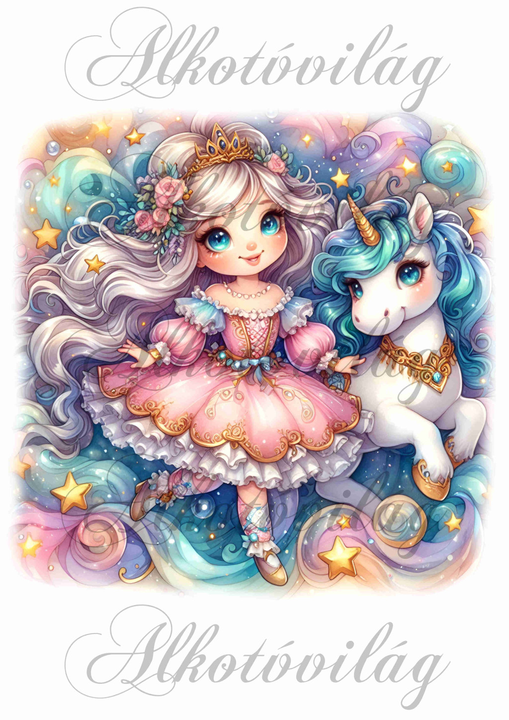 Párnablokk - vászontáska blokk - hercegnő unikornissal, rózsa hajdísszel