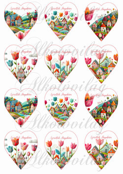 6,5 cm magas szívek csodás tulipánokkal és házikókkal gyapjú utánzatú struktúrával - SZERETLEK ANYUKÁM felirattal - Több mint 20 alapanyagon elérhető.