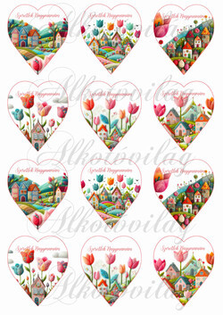 6,5 cm magas szívek csodás tulipánokkal és házikókkal gyapjú utánzatú struktúrával - SZERETLEK NAGYMAMÁM felirattal