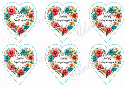 Csodás szívek virágokból - BOLDOG ANYÁK NAPJÁT felirattal -9 cm - Több mint 20 alapanyagon elérhető.