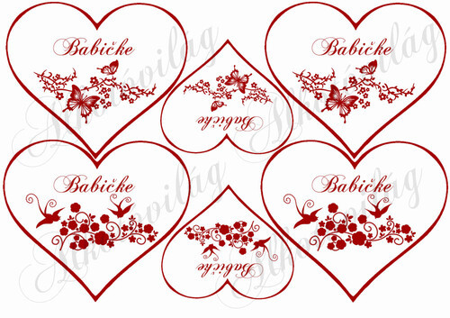 Piros szívek pillangós mintákkal - SZLOVÁK nyelvű anyák napi felirattal - Több mint 20 alapanyagon elérhető.