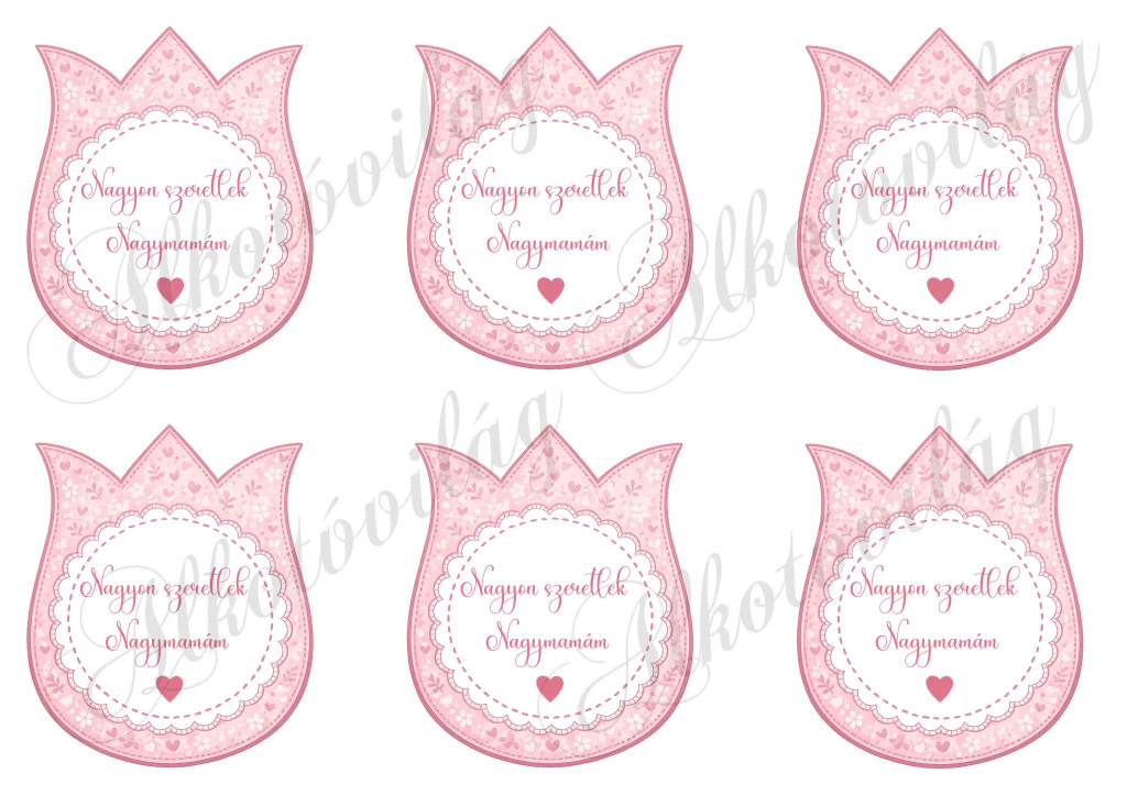 9 cm magas pasztell rózsaszínes tulipánok - NAGYON SZERETLEK NAGYMAMÁM - felirattal