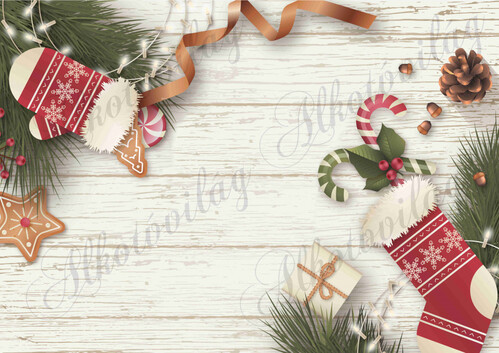 Fotóháttér termékfotózáshoz - Kesztyű, zokni, mézeskalács, cukorkabot drapp deszkán 2 - Több mint 20 alapanyagon elérhető.