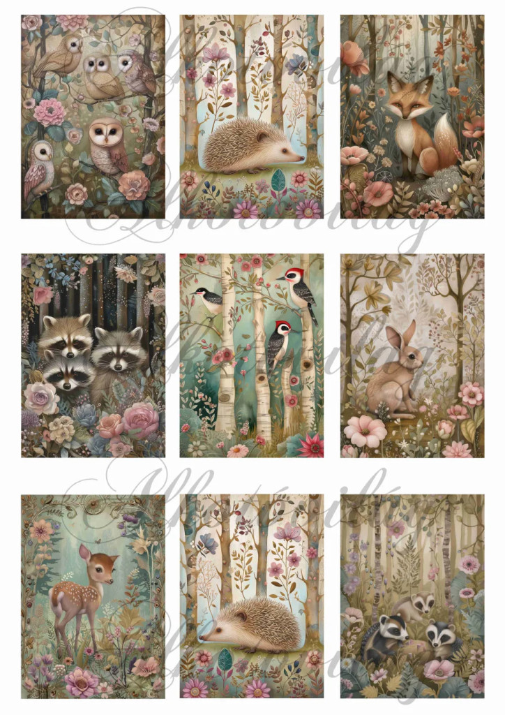 Woodland kártyák állatkákkal és virágokkal 8,5 cm x 6 cm - VASALHATÓ FÓLIA
